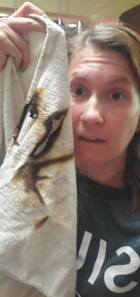 Yeah…. I’ve had a gas stove in my house for over ten years and this is the very first time something caught fire. I had the towel too close to the pot as I was using it to check the thermometer (I almost burned myself on the metal clip) and welp. Flames. It actually took me a hot minute (lol) to notice it caught fire, and when it did, my first thought was to dunk it in the ice water holding the blanched slices.