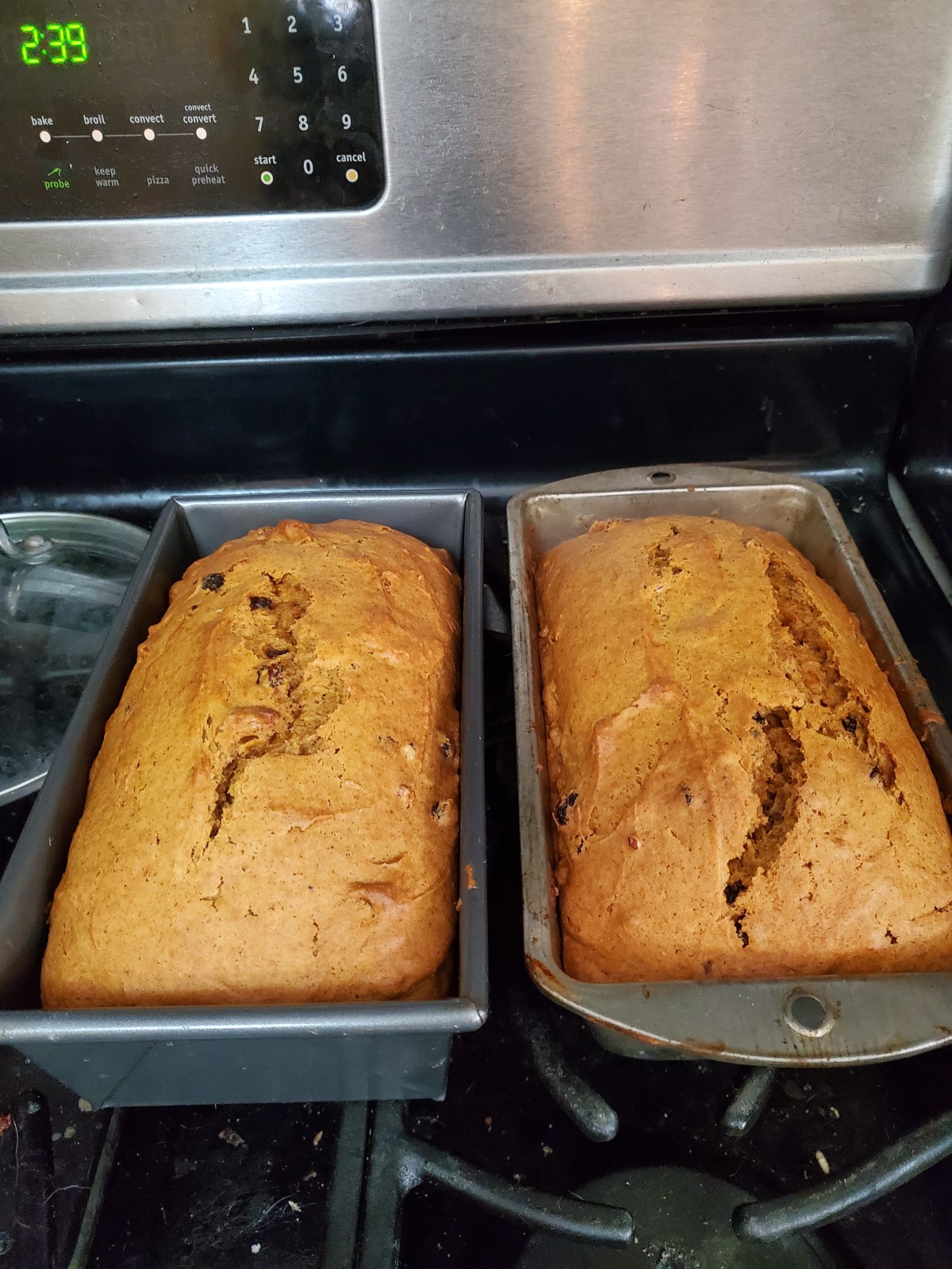 After baking for an hour and ten minutes, it was finally done. It was at a bit of a lower temp so that’s probably why it took so long. I wanted to sew after I pulled them out, and I realized that the dogs would ABOSLUTELY get into these, so I couldn’t leave them on the counter. Especially considering the raisins. So I actually took them downstairs to my sewing area, where the dogs and cats aren’t allowed. Modern problems require modern solutions.